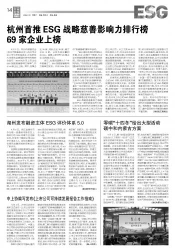 杭州首推ESG戰(zhàn)略慈善影響力排行榜69家企業(yè)上榜