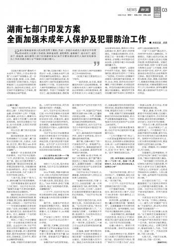 湖南七部門印發(fā)方案全面加強未成年人保護及犯罪防治工作