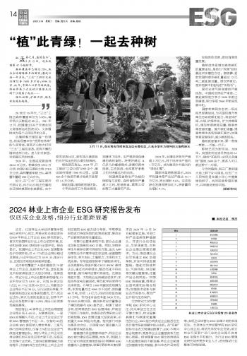2024林業(yè)上市企業(yè)ESG研究報告發(fā)布