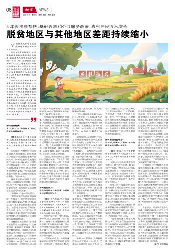 4年多接續(xù)幫扶,基礎(chǔ)設(shè)施和公共服務(wù)改善,農(nóng)村居民收入增長(zhǎng)——脫貧地區(qū)與其他地區(qū)差距持續(xù)縮小