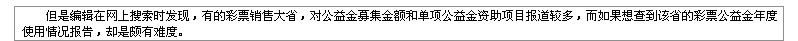 按照《彩票公益金管理辦法》,各省財(cái)政部門應(yīng)2009年6月底前,向社會(huì)公告2008年本行政區(qū)域內(nèi)的公益金相關(guān)信息。但公益時(shí)報(bào)記者日前就各省彩票公益金使用情況進(jìn)行查詢時(shí),卻發(fā)現(xiàn)多個(gè)省市的該項(xiàng)信息缺失,部分省市發(fā)布的所發(fā)布數(shù)據(jù)又普遍空泛、不細(xì)致!詳細(xì)
