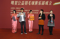 10月28日,囊括眾多演藝明星的明星羽毛球隊(duì)正式改名為公益明星羽毛球俱樂(lè)部,并在釣魚(yú)臺(tái)舉行了隆重的成立儀式。明星羽毛球隊(duì)自2003年成立以來(lái),已發(fā)展到近百人的陣容。中國(guó)社會(huì)工作協(xié)會(huì)副會(huì)長(zhǎng)、《公益時(shí)報(bào)》社社長(zhǎng)劉京擔(dān)任主席、劉曉慶擔(dān)任執(zhí)行主席。